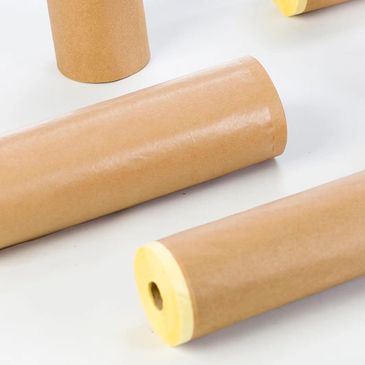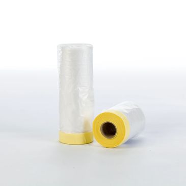 Cinta krepp de carrocero color natural con plástico de polietileno de alta densidad tratado con carga electroestática, para su ajuste a la superficie sobre la que se aplica.